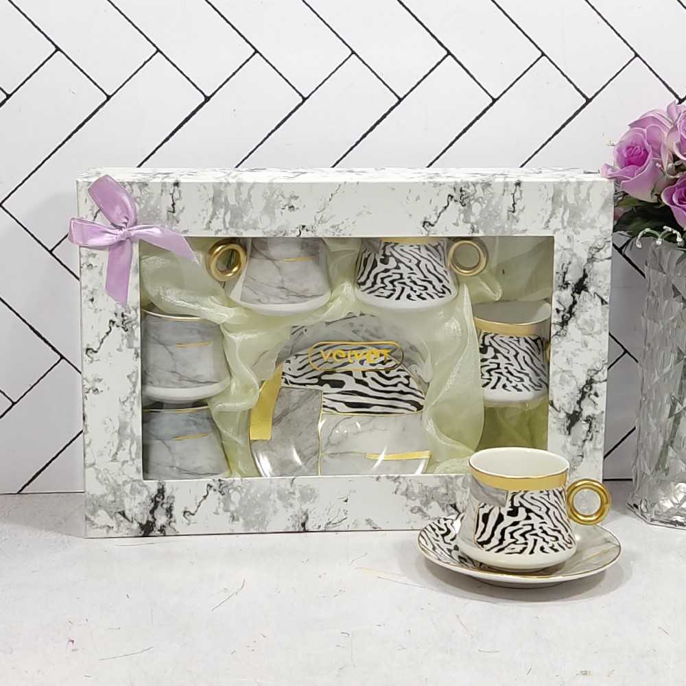 ست فنجان ونعلبکی (چای خوری) 444سرامیک طرح پلنگی سفیدمشکی VELVET(12)