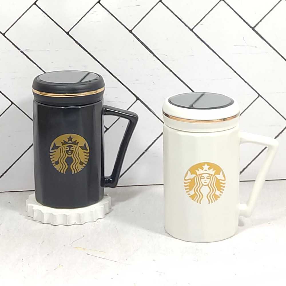 ماگ درب آینه ای جفتی سفید مشکی استارباکس سرامیکی 14-826 بلینا(30)