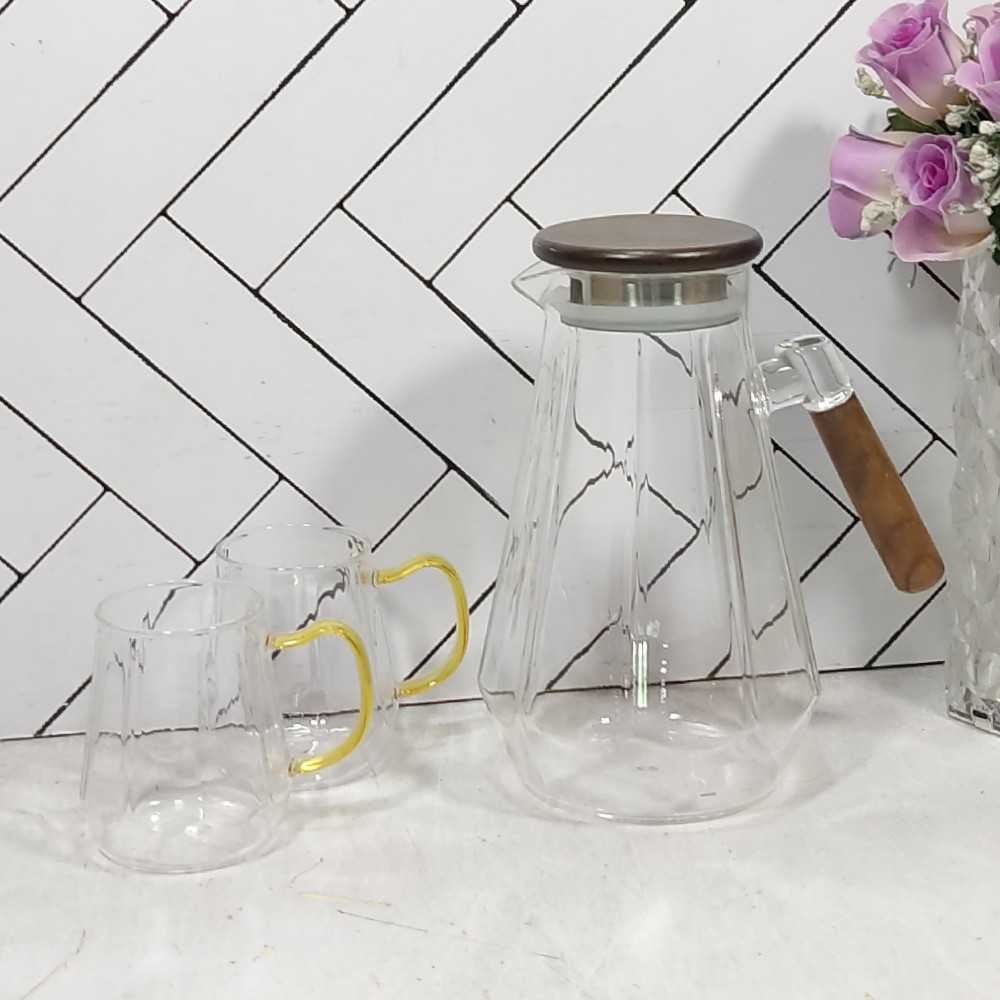 پارچ و لیوان پارچ دسته چوبی چند ضلعی 7 پارچ بلینا (8)