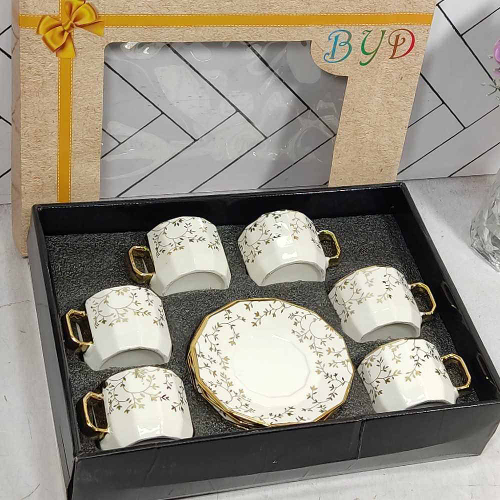 ست فنجان نعلبکی طرح سنتی سفید طلایی سرامیکی 34-827 بلینا(12)