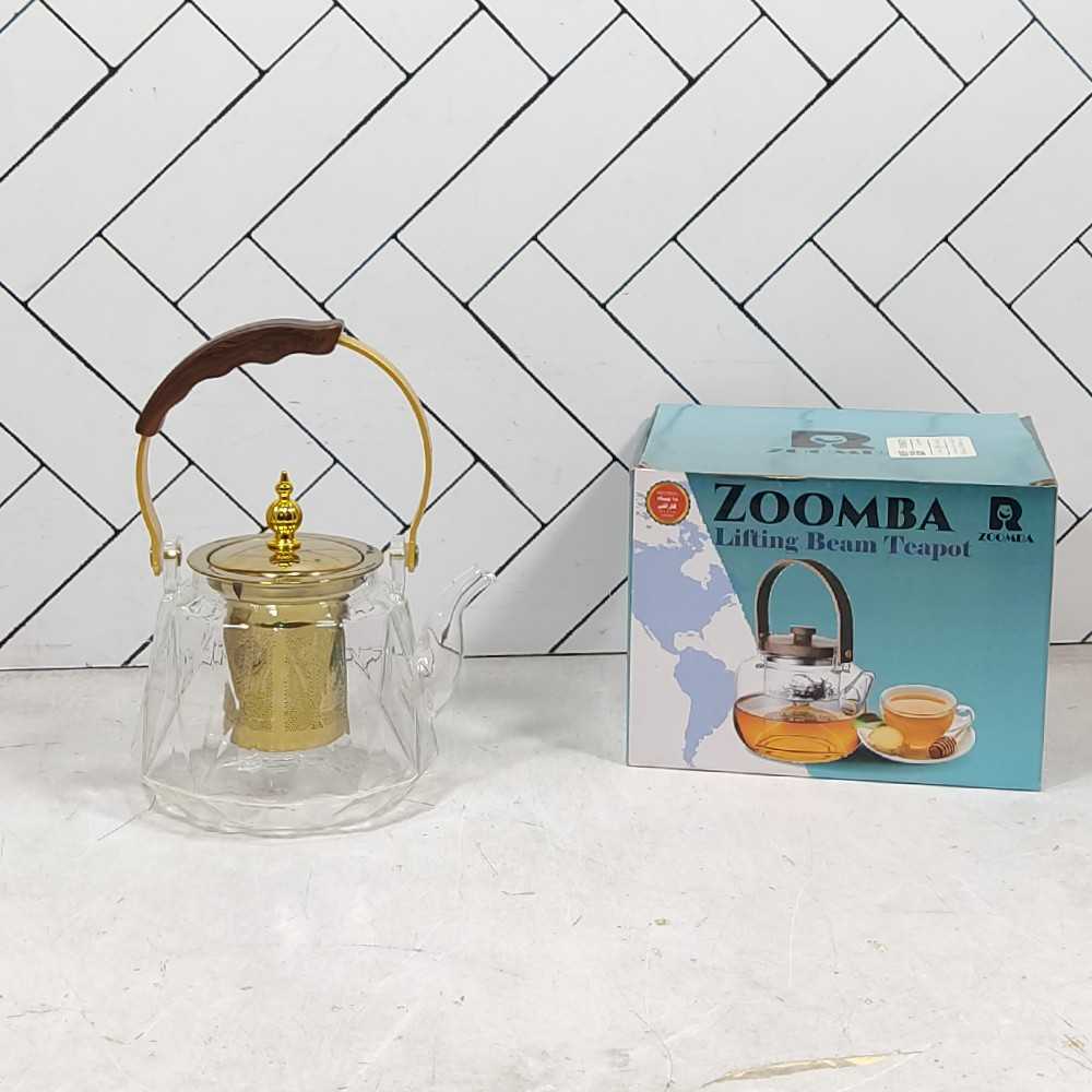 قوری پیرکس صافی دار چند ضلعی دسته طلایی چوبی حجم 1200 میل زومبا (36)