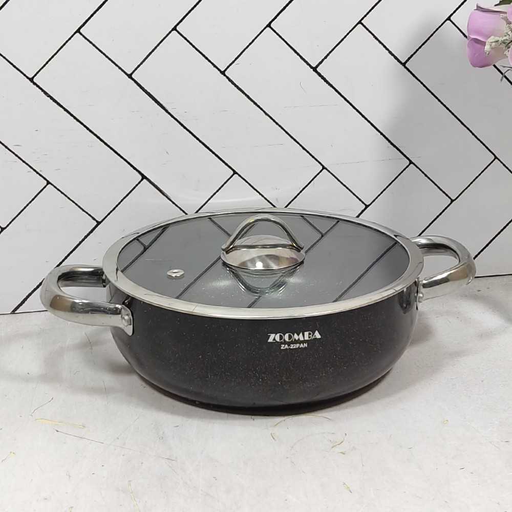 تابه درب پیرکس مشکی دو دسته سایز 22 گرانیتی زومبا (12)