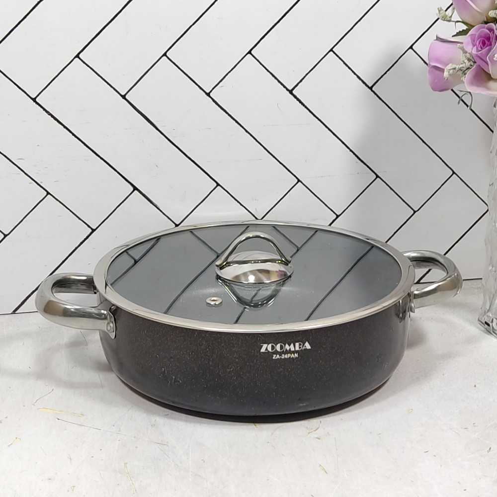 تابه درب پیرکس مشکی دو دسته سایز 24 گرانیتی زومبا (12)