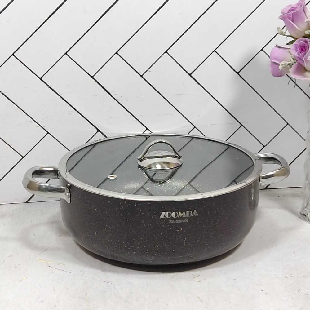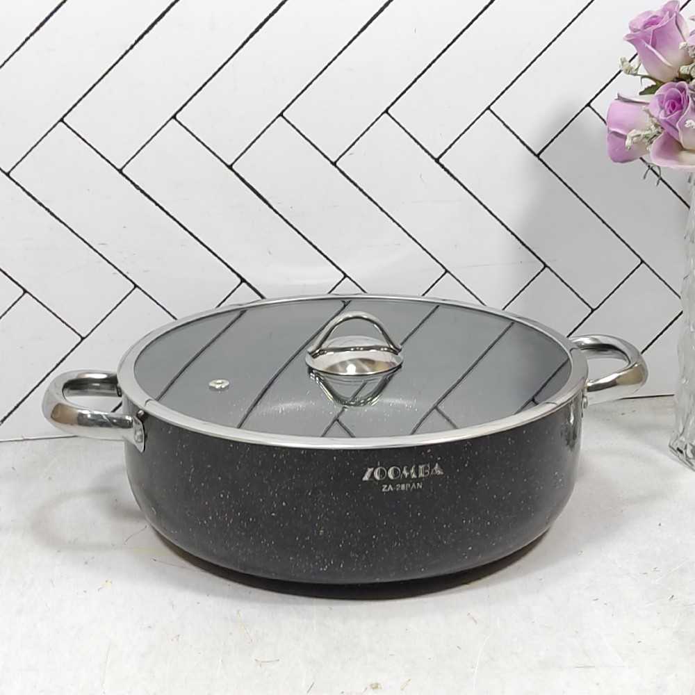 تابه درب پیرکس مشکی دو دسته سایز 28 گرانیتی زومبا (10)