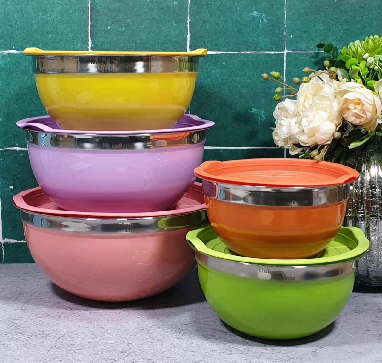 کاسه سرویس5 تکه رنگی درب رنگی یونیک لایف (100)