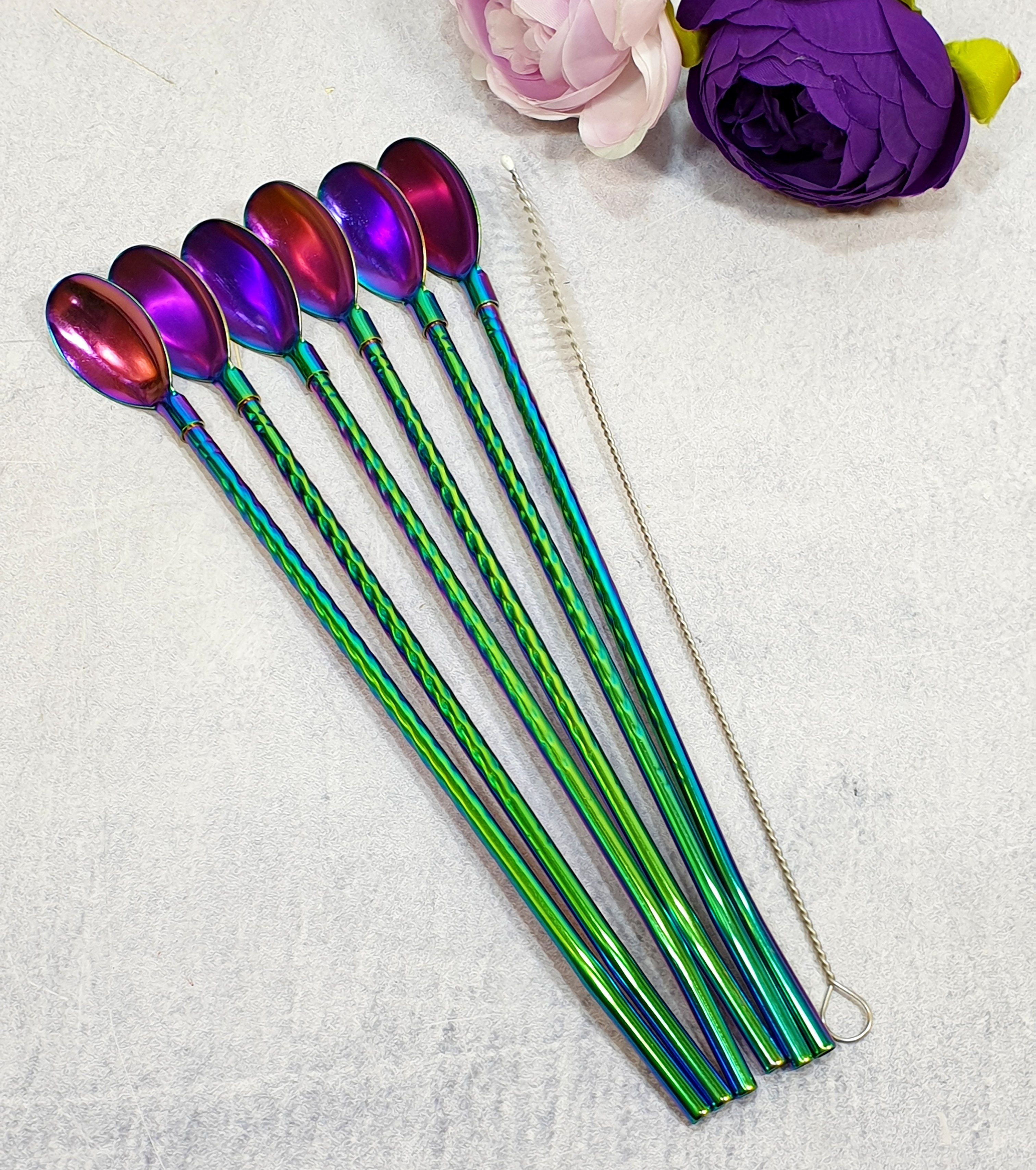 نی شربت قاشق دار فرچه دار هفت رنگ طرح پیچ یونیک لایف (100)