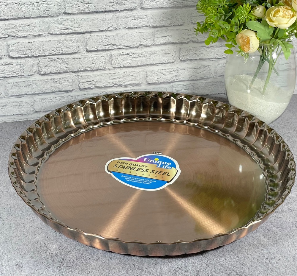 سینی گرد لب کنگره سایز 50 رنگ مسی یونیک لایف(100)
