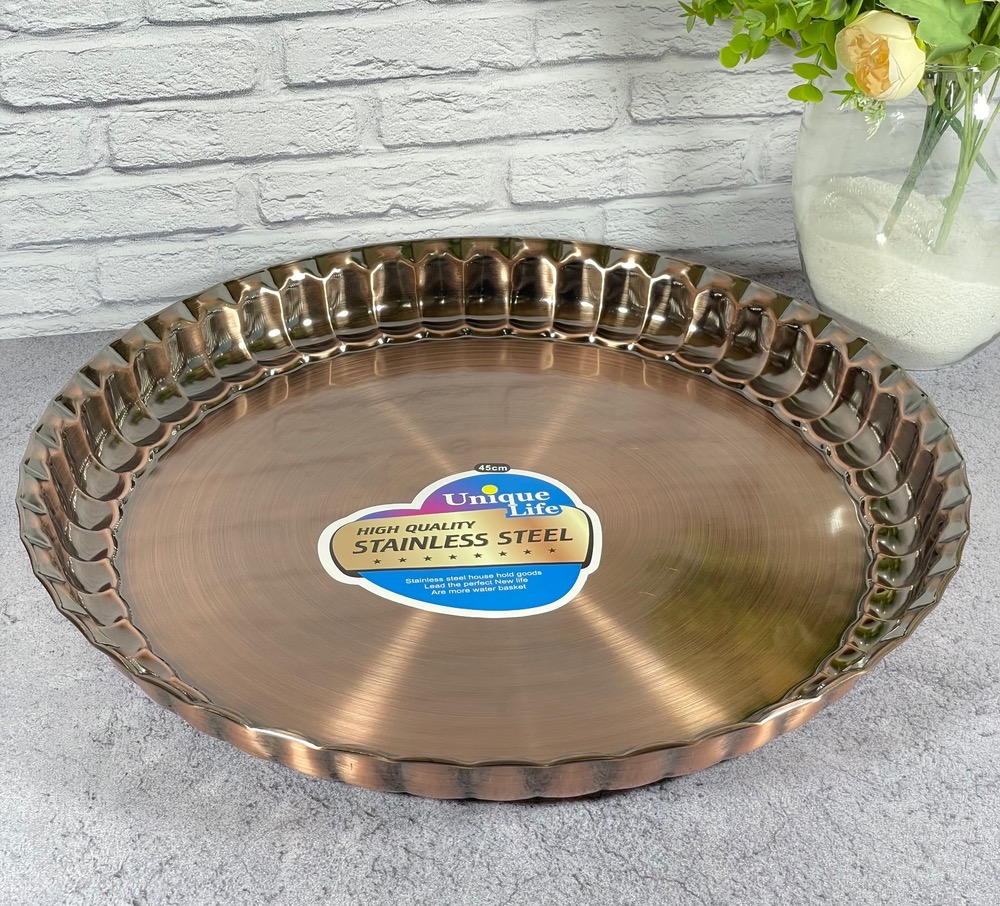 سینی گرد لب کنگره سایز 45 رنگ مسی یونیک لایف (100)