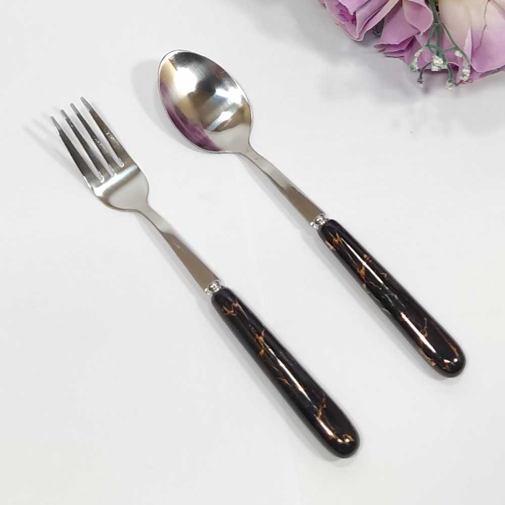 قاشق چنگال استیل دسته سرامیک ماربل مشکی High Quality (48)