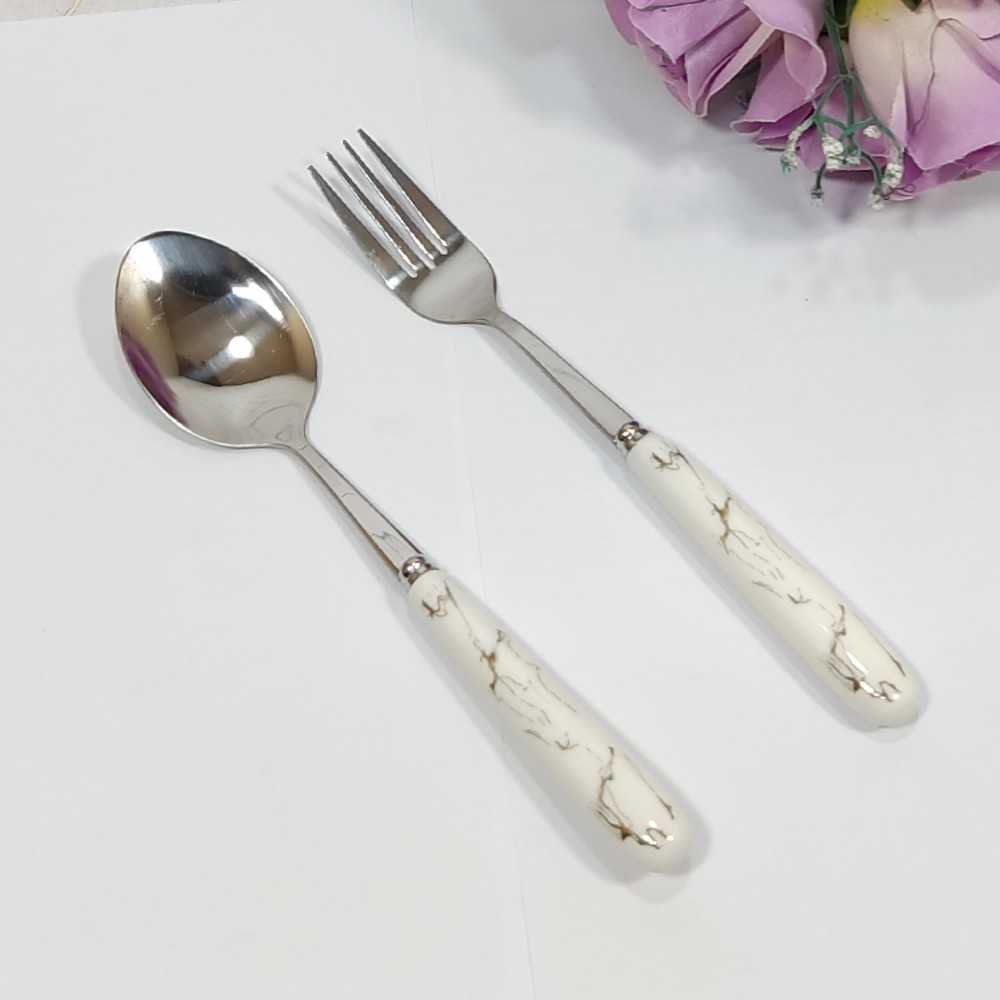 قاشق چنگال استیل دسته سرامیک ماربل سفید یونیک لایف (100)