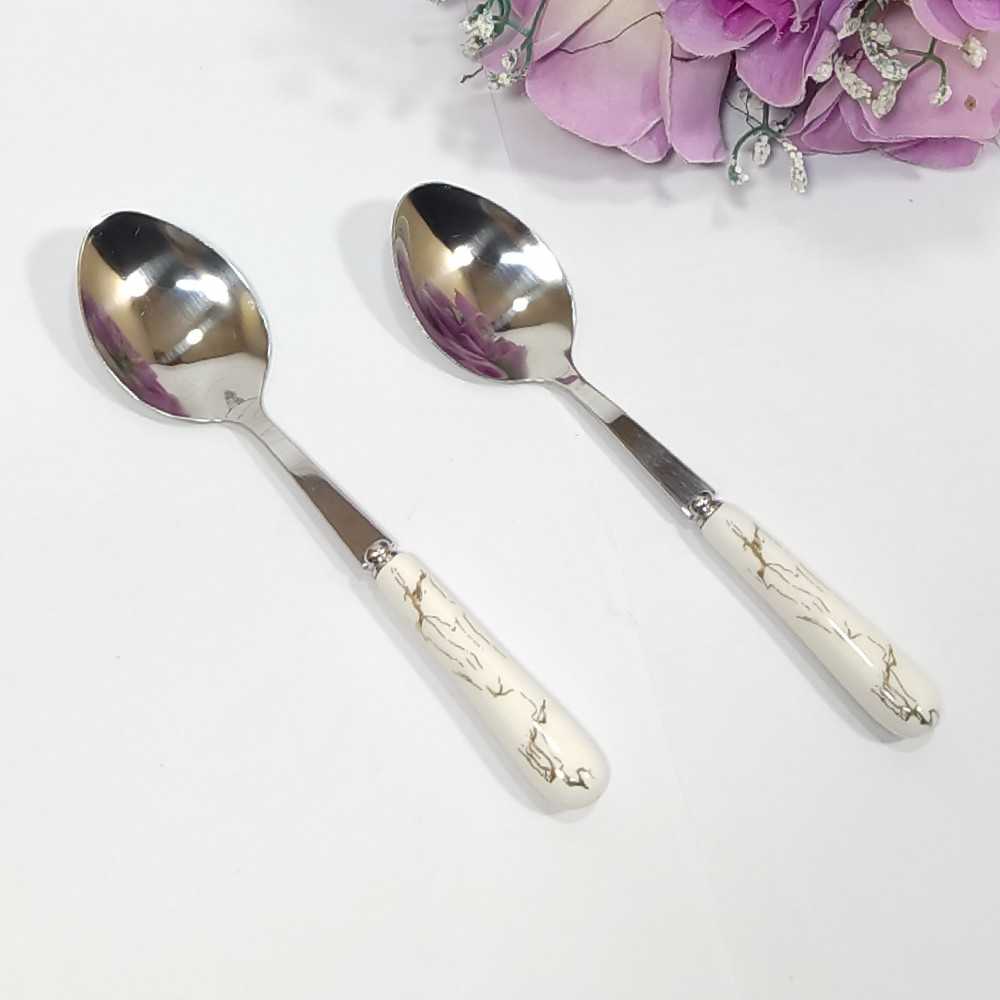 قاشق مربا استیل دسته سرامیک ماربل سفید یونیک لایف (100)