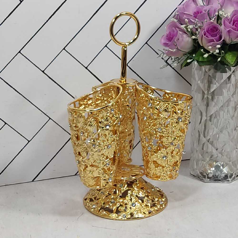 ست قاشق چنگال 24 پارچه با استند تخم مرغی A610 طلایی (1)