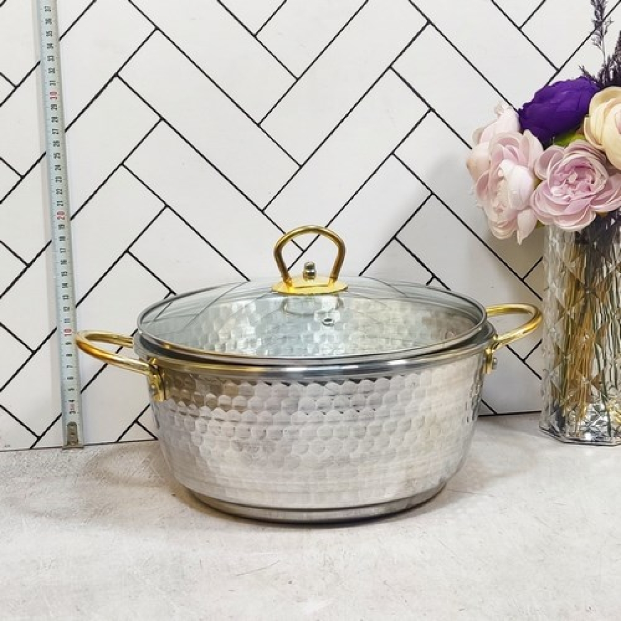 قابلمه دسته طلایی درب پیرکس سایز 5 وگاتی مهروز (12)
