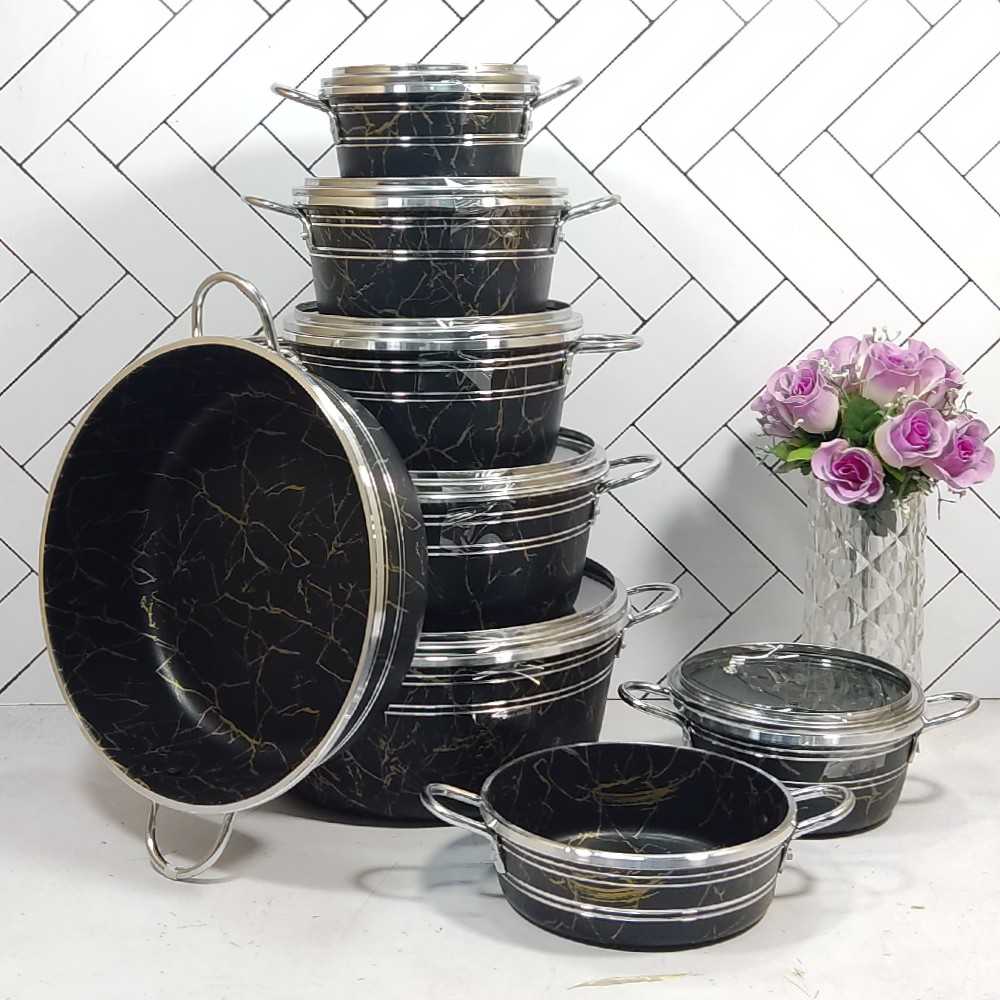 سرویس قابلمه 7 پارچه ماربل مشکی دسته نقره ای زومبا (1)