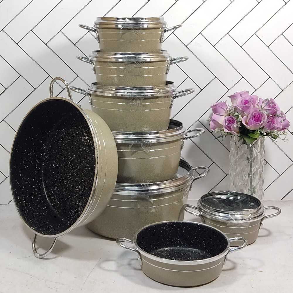 سرویس قابلمه 14 نسکافه ای پارچه دسته نقره ای گرانیت گلدانی زومبا (1)