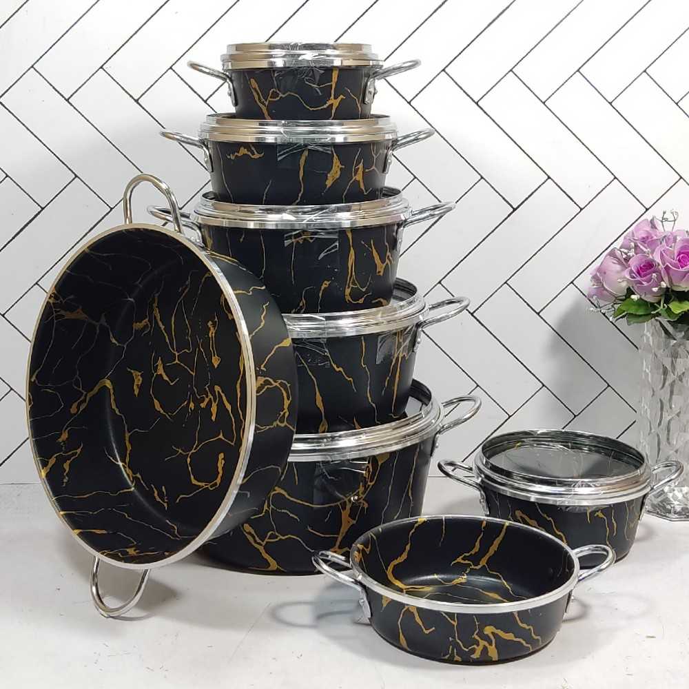 سرویس قابلمه 14 پارچه ماربل مشکی دسته نقره ای زومبا (1)