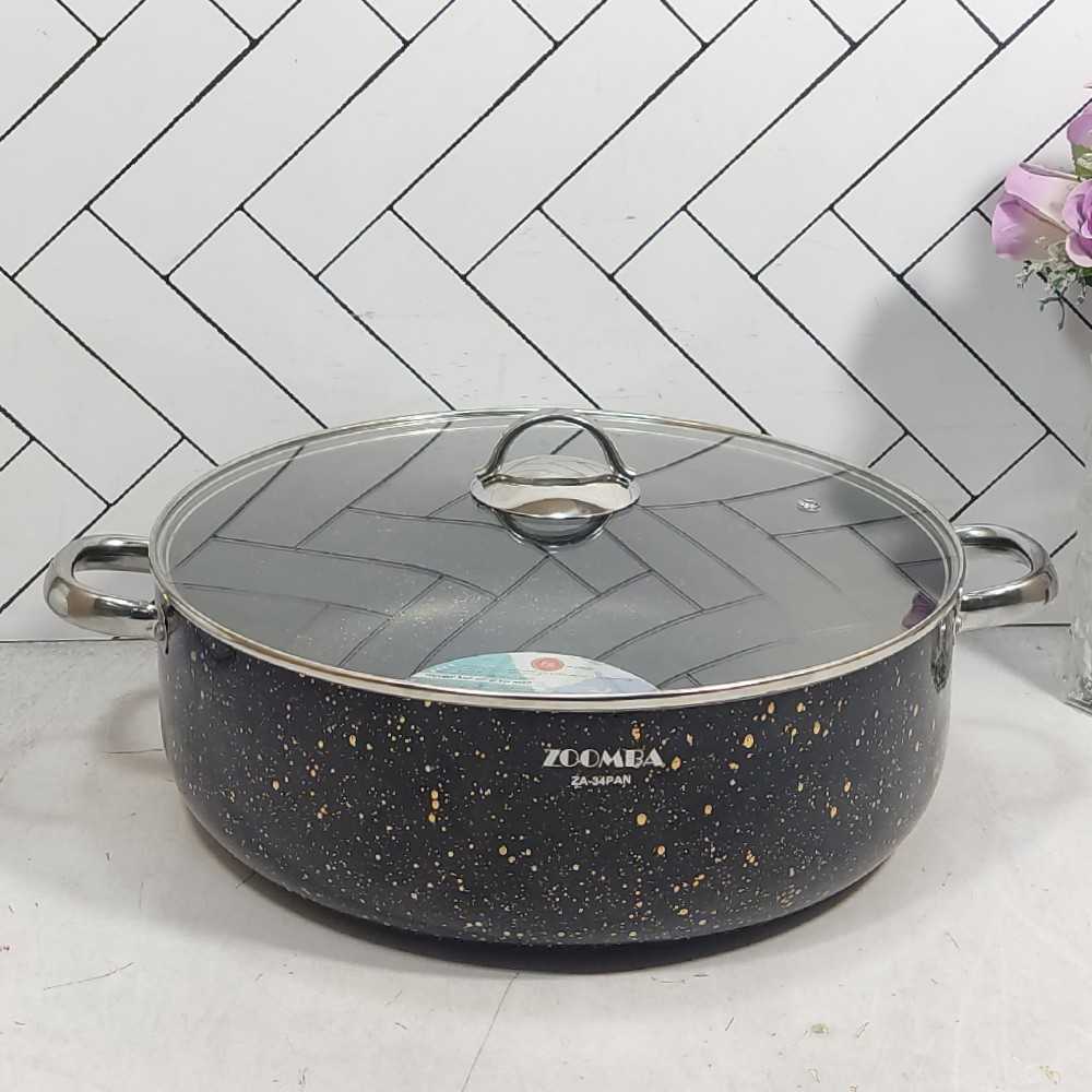تابه درب پیرکس مشکی دو دسته سایز 34 گرانیتی زومبا (10)
