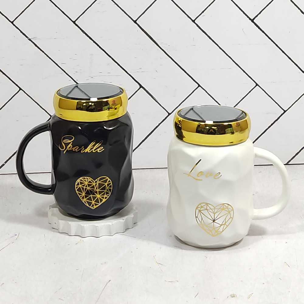 ماگ درب آینه ای جفتی سفید طلایی طرح لاو سرامیکی 77-825 بلینا(36)