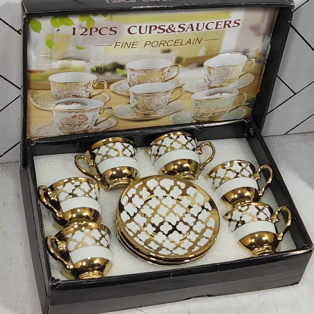 ست قهوه خوری طرح پیانو مشکی طلایی سرامیکی 26-825 بلینا(24)