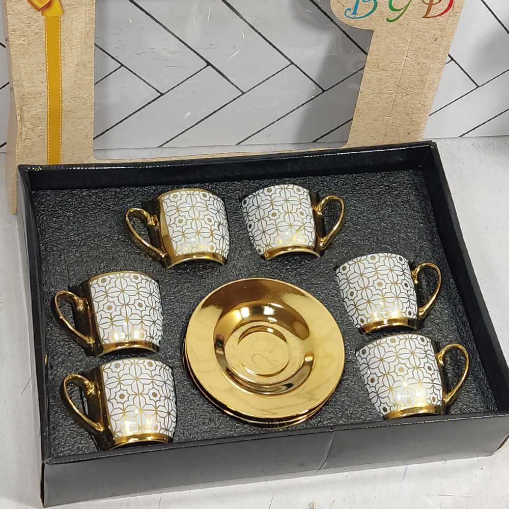 ست فنجان نعلبکی طرح سنتی سفید طلایی سرامیکی 34-827 بلینا(12)