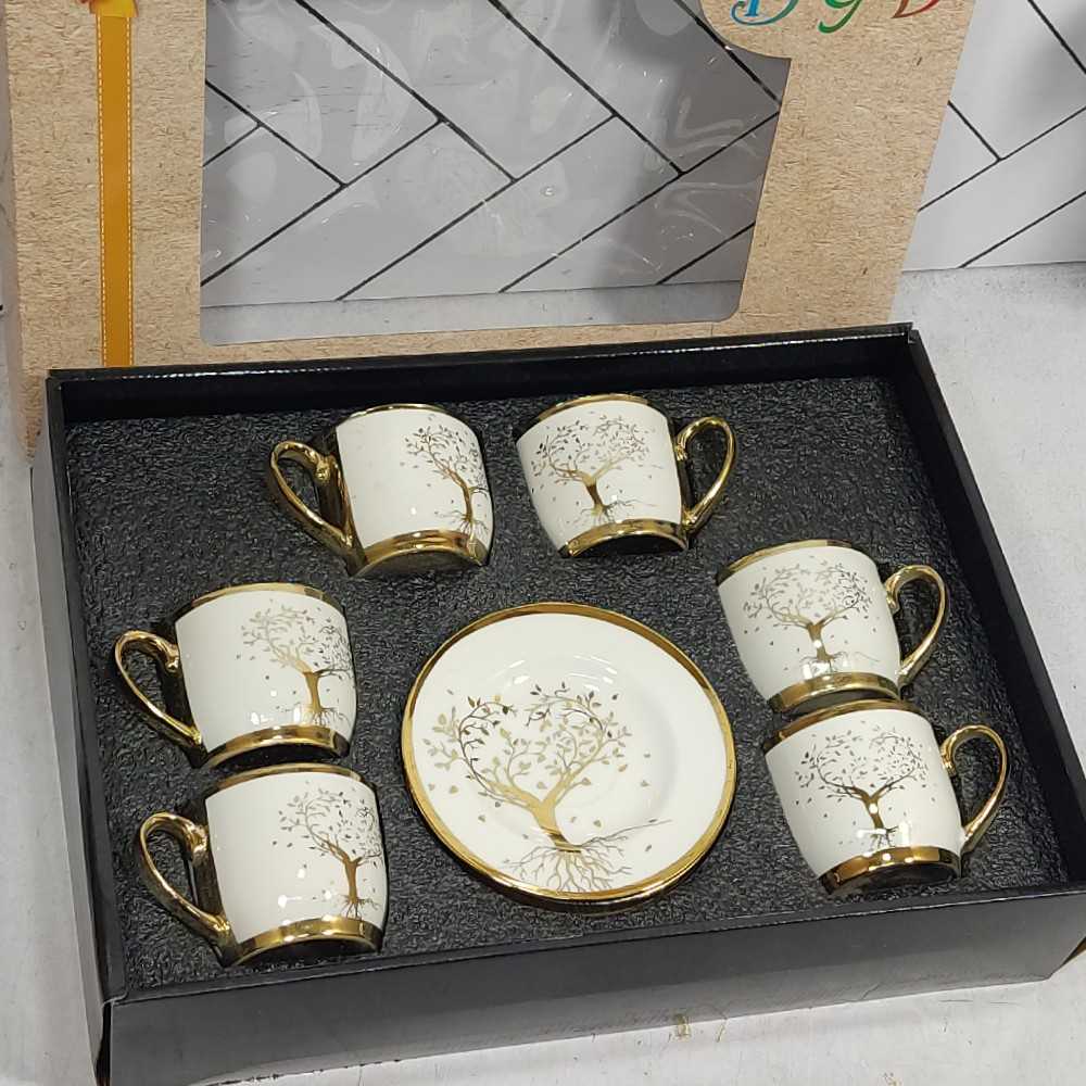 ست فنجان و نعلبکی طرح قارچ و درخت طلایی سرامیکی 31-827 بلینا(12)