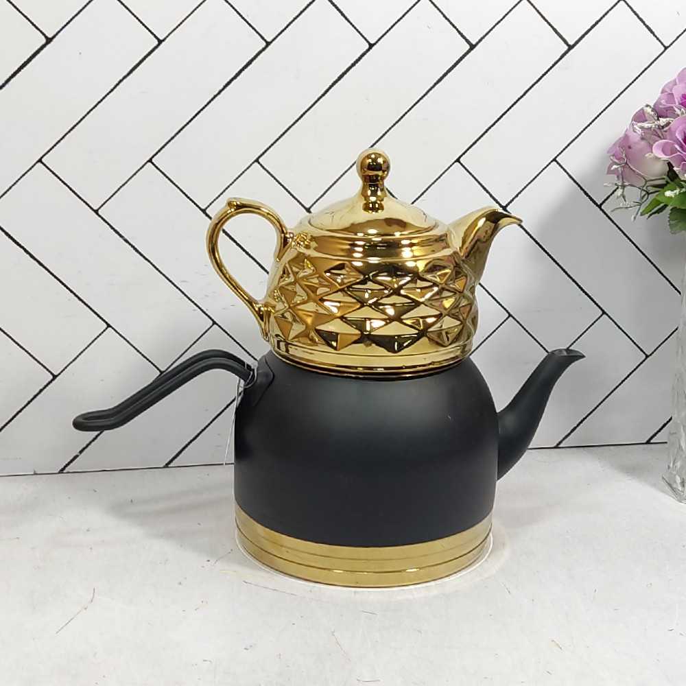 کتری قوری تک دسته 3 لیتر مشکی طلایی ناسیونال (6)