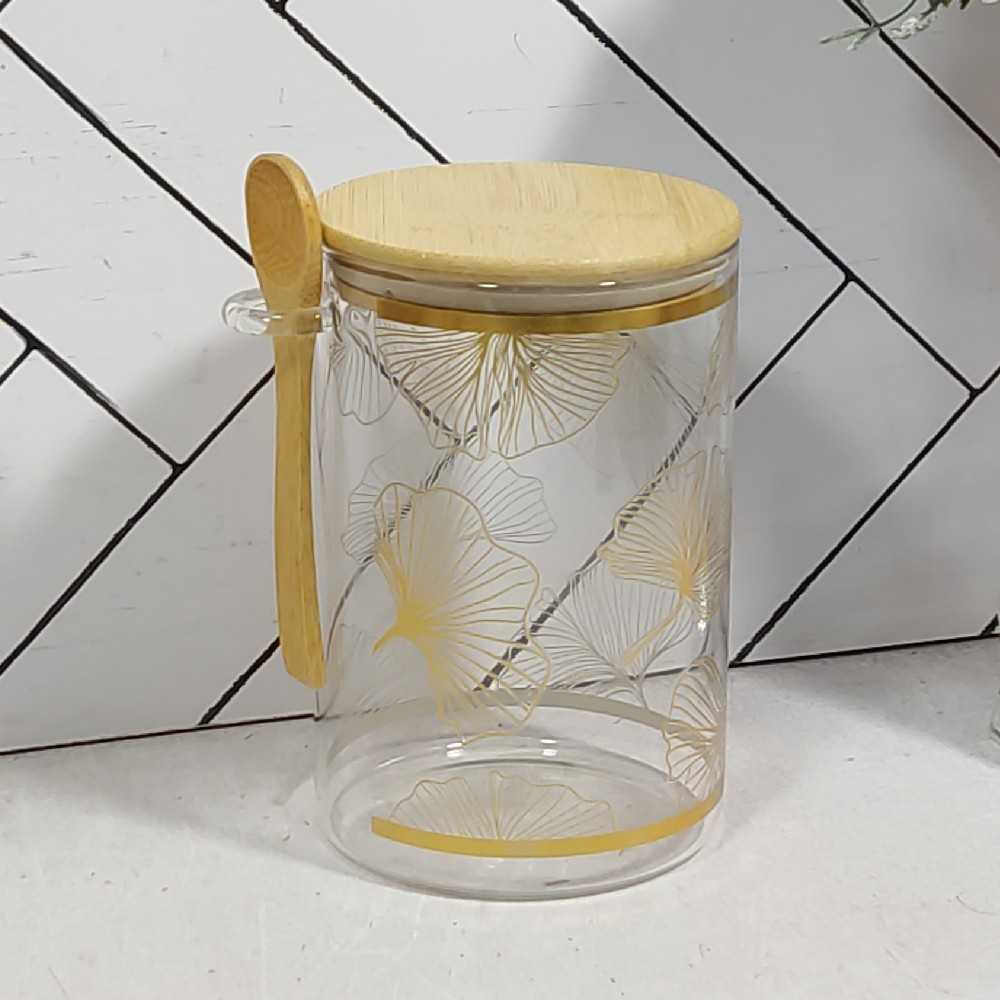 بانکه گرد گلدار متوسط دسته دار قاشق دار درب چوبی (1)