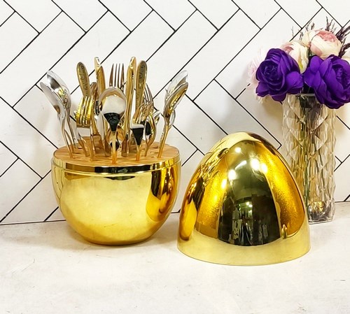 ست قاشق چنگال 24 پارچه با استند تخم مرغی A001 طلایی (1)